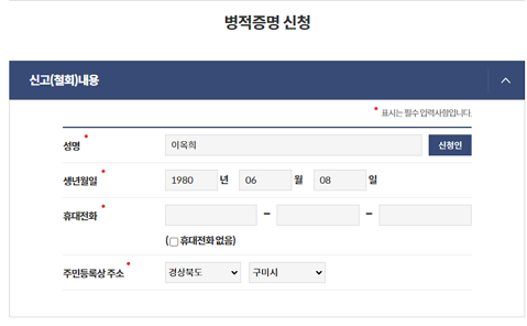 병적증명서신청