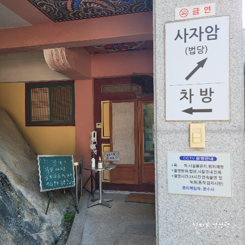사자암 계단을 오르면 차 방이라고 적힌 곳에서는 차를 마시고 담소를 나눌 수 있는 장소도 마련되어 있습니다.