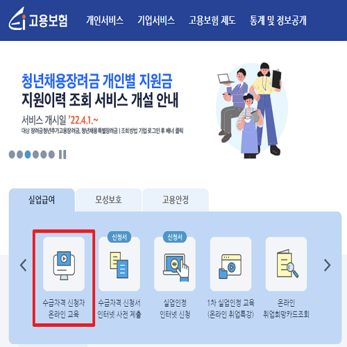 고용보험 홈페이지 메인화면에 첫 번째 메뉴에 나와있습니다.