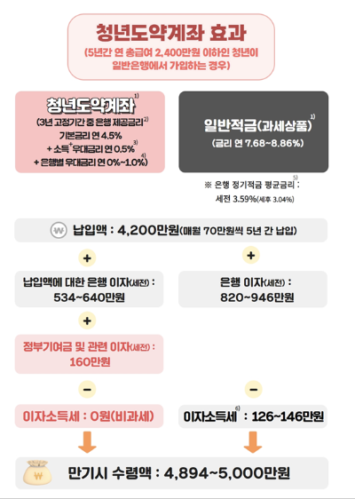 청년도약계좌 출시 직후부터 목돈마련을 위한 청년들의 가입신청이 폭발적이다. 5년간 매월 70만 원씩 납입하면 7000만 원 달성이라는 목표아래 금리 확인도 안 하고 묻지 마 따지지도 마. 식으로 가입하는 청년들도 많다.