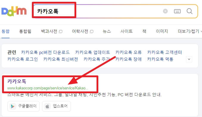 1. 카카오톡 PC버전 다운로드를 위해서 검색창에 카카오톡을 입력하세요.