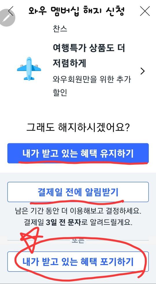 유지하기는 해지를 하지 않겠다는 뜻이고 결제일 전에 알림 받기는 멤버십혜택기간이 남아 있는 경우 해지를 바로 진행하지 않고 결제일 되기 전까지 혜택을 보다가 알림을 받고 해지하기를 하겠다는 의미이고 지금 당장 해지를 원한다면 내가 받고 있는 혜택포기하기를 누르시면 바로 해지처리를 하실 수 있습니다.