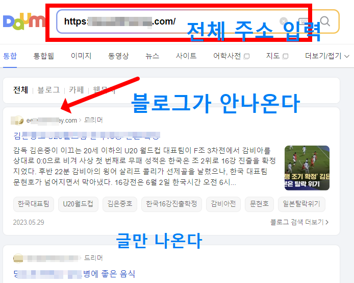 다음 검색창에 내 블로그 주소만 입력합니다.