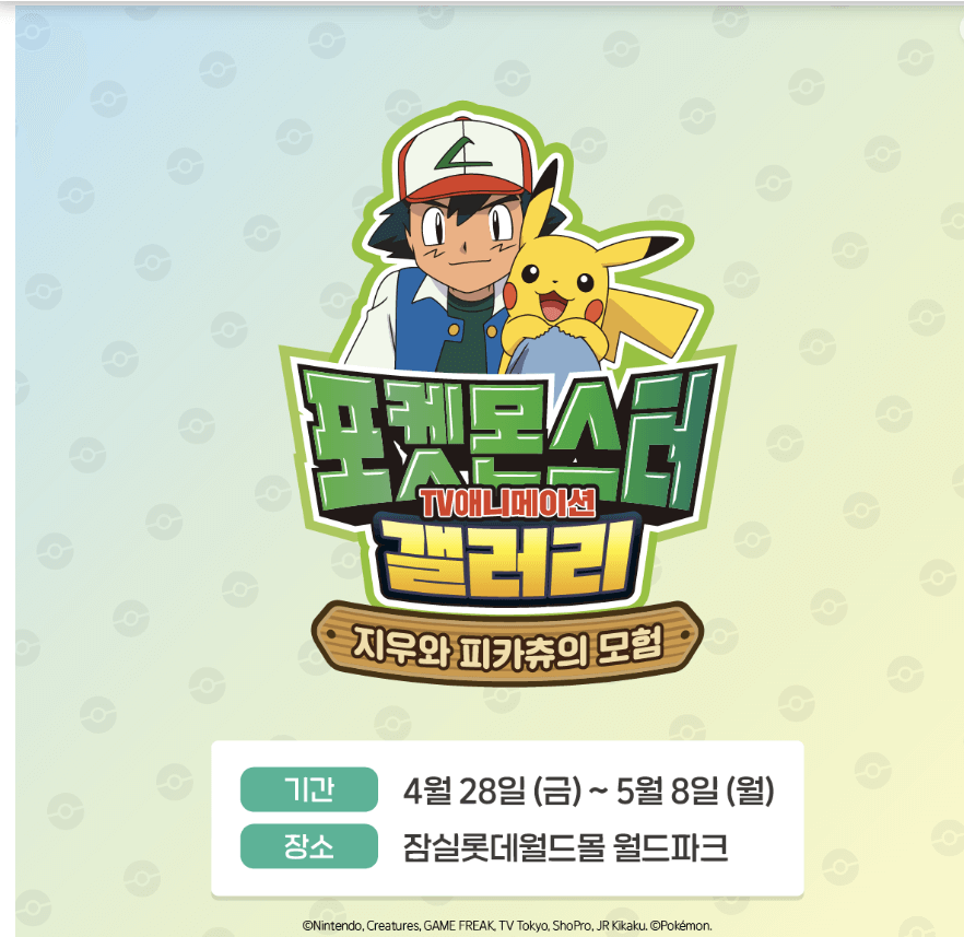 잠실 롯데월드몰 월드파크에서 펼쳐지는 TV애니메이션 갤러리에서는 만화 속에 등장했던 캐릭터들과 명장면으로 각기 다른 어린이날 행사 포토존을 만든다고 합니다. 각가 다른 콘셉트로 3가지의 포토존을 만든다고 하고 포켓몬으로 가득 찬 대형 어린이날 행사 포토존은 블로그나 인스타그램, 트위터, 유튜브, 페이스북등 sns를 하고 사진 찍는 것을 좋아하는 친구들이라면 어린이날 최고의 선물이 되지 않을까 싶습니다.